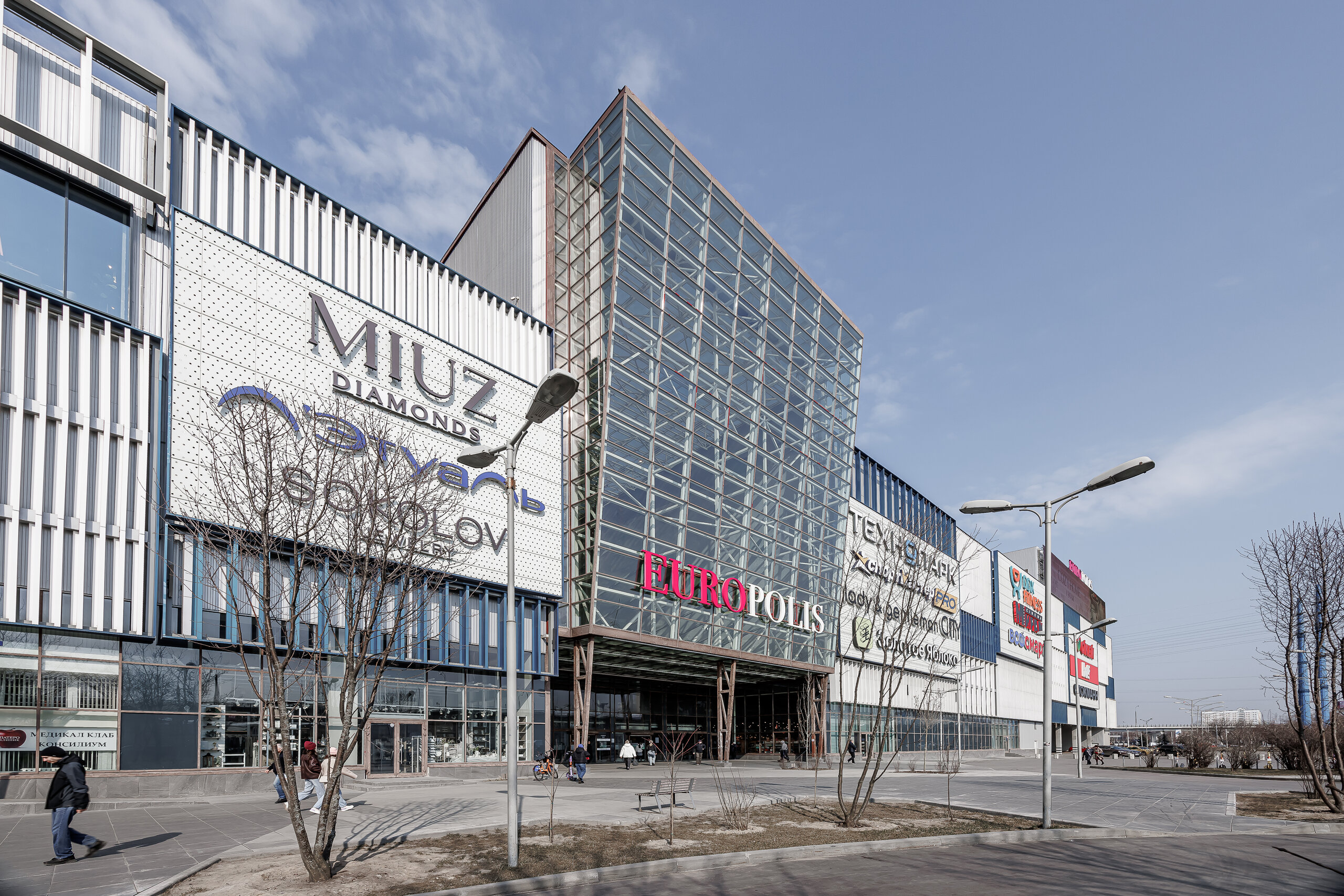 На 2-х торговых уровнях ТРК разместились fashion-универмаги, монобрендовые бутики одежды и обуви, магазины спортивных товаров, ювелирных изделий, электроники и бытовой техники, товаров для красоты и здоровья, дома и декора. Развлекательная зона представлена многозальным кинотеатром, картингом, фитнес-клубом, детскими центрами развлечений, и гастрономической зоной EUROPOLIS CITYFOOD